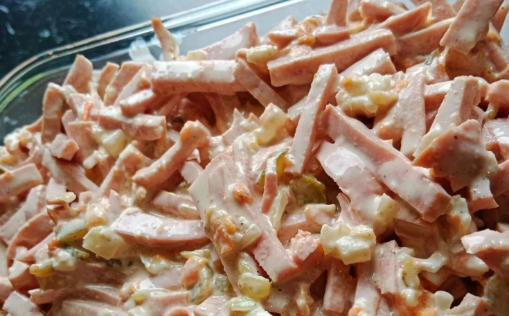 - Pikantní, vydatný salát s šunkovým salámem a zeleninou