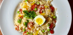 - Zakryjte potravinovou fólií a nechte salát alespoň 30 minut odpočinout, aby se chutě spojily.